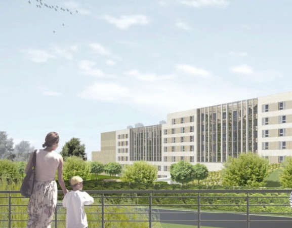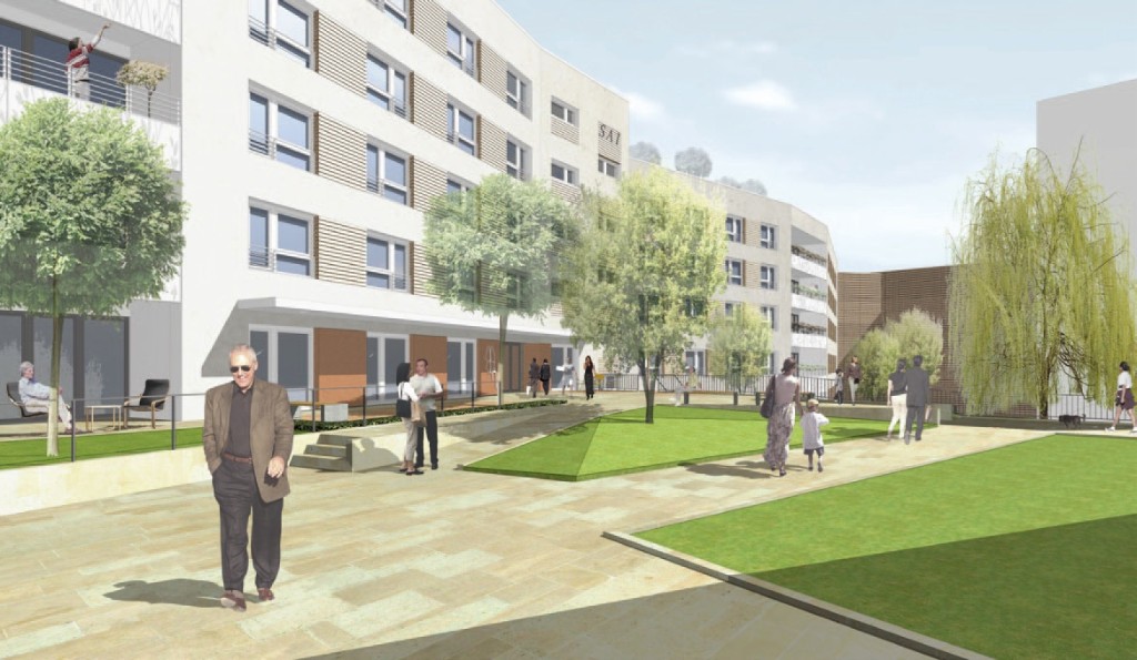Das KerVita-Pflegeheim bildet zusammen mit dem Ärztehaus künftig den Eingang zum Inselpark an der Neuenfelder Straße. Das Grundstück wird künftig über eine Fußgängerbrücke nahezu direkt mit dem S-Bahnhof Wilhelmsburg verbunden sein.